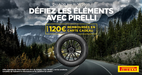 Du 4 au 30 septembre 2023, pour l’achat et la pose de 2 ou 4 pneumatiques Pirelli, recevez jusqu’à 100€ […]
